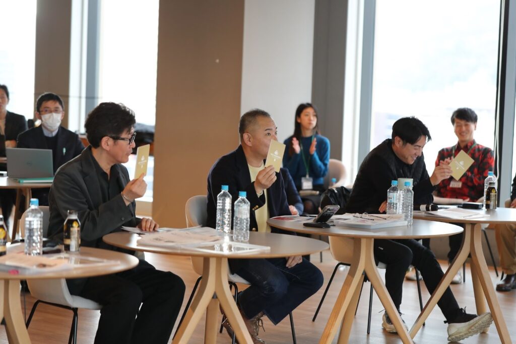 合格者ピッチは発表の後に、審査員(プロデューサー)による質問が行われ、続いて審査員がカードを上げて合格者への支援の意思を示したうえでコメントを伝える形式です。やり取りの中で、発表内容に対する確認点や課題が整理されていきました。
